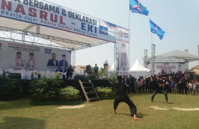 Pantauan di lokasi, tampilnya peguron Bandrong di acara deklarasi tersebut, bisa jadi merupakan sinyal dukungan terhadap pasangan Nasrul-Eki untuk bisa menang di Pilkada Kabupaten Serang, dan menjadi Bupati dan Wakil Bupati Serang periode 2021-2024.