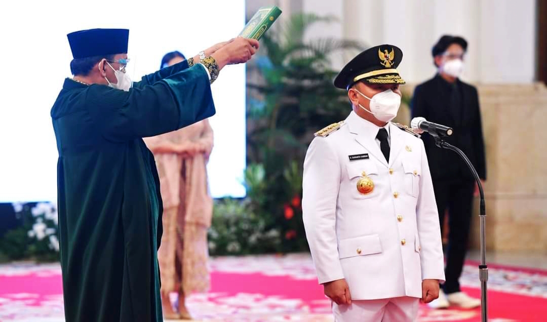 BantenEkspose.com - Presiden Joko Widodo melantik dan mengambil sumpah Sugianto Sabran dan Edy Pratowo, sebagai Gubernur dan Wakil Gubernur Kalimantan Tengah masa jabatan tahun 2021-2024.